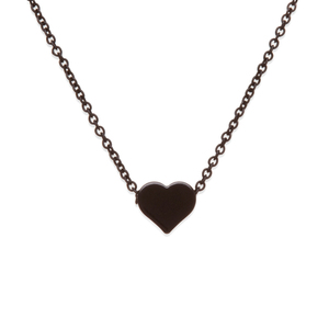 Is this miniature black heart a mixed message? Nope, just beautiful! On a simple black chain. Black metal, enamel heart 15" long; 2" extender Lobster clasp closure erikas.kitsylane.com/index.php?file=product_detail&pId=2127