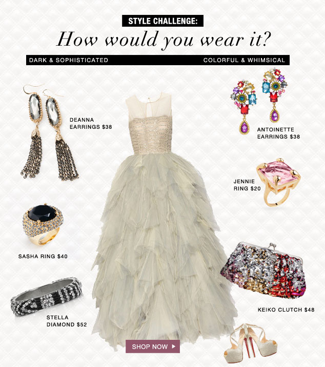 We asked you on Facebook to style the perfect, most red-carpet-ready look... and your picks wowed us. Here, glam, sparkly, dramatic (and even some unexpected) nominations for putting your best foot forward - stage or no stage erikas.kitsylane.com/index.php?file=sale&sId=218